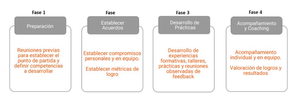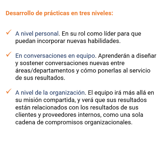 El enfoque integra liderazgo generativo, coaching de equipos y prácticas de mejora continua, aplicadas sobre situaciones reales de planta, incluyendo sesiones observadas del trabajo del líder con su equipo para ofrecer feedback profesional que refuerza comportamientos efectivos y acelera el cambio.